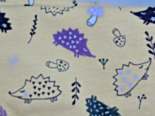 Reststück Baumwolljersey Igel auf ocker