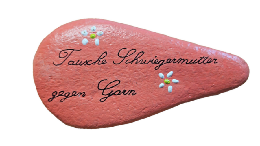 Stein, Flußstein, Naturstein, gemalt - Schwiegermutter