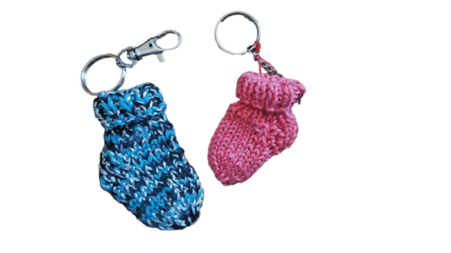 Schlüsselanhänger - Minisocke - gestrickt - mit Einkaufswagenchip