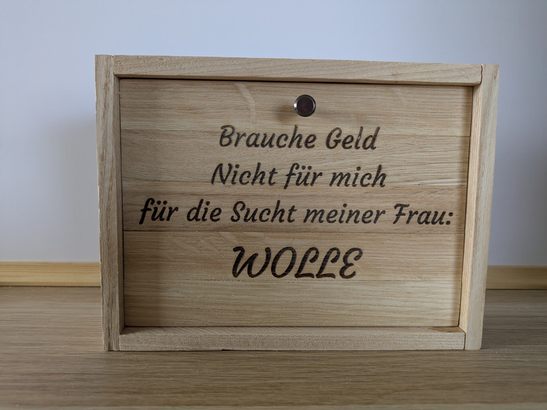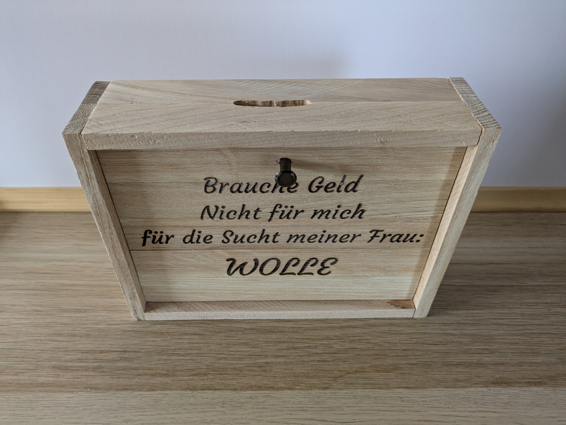 Diese dekorative Sparbox ist ein originelles Geschenk für viele Anlässe – ob Hochzeit, Geburtstag, Geburt oder als persönliche Motivation. Sie wird individuell gefertigt: Bitte geben Sie Ihren Wunschtext bei der Bestellung an.